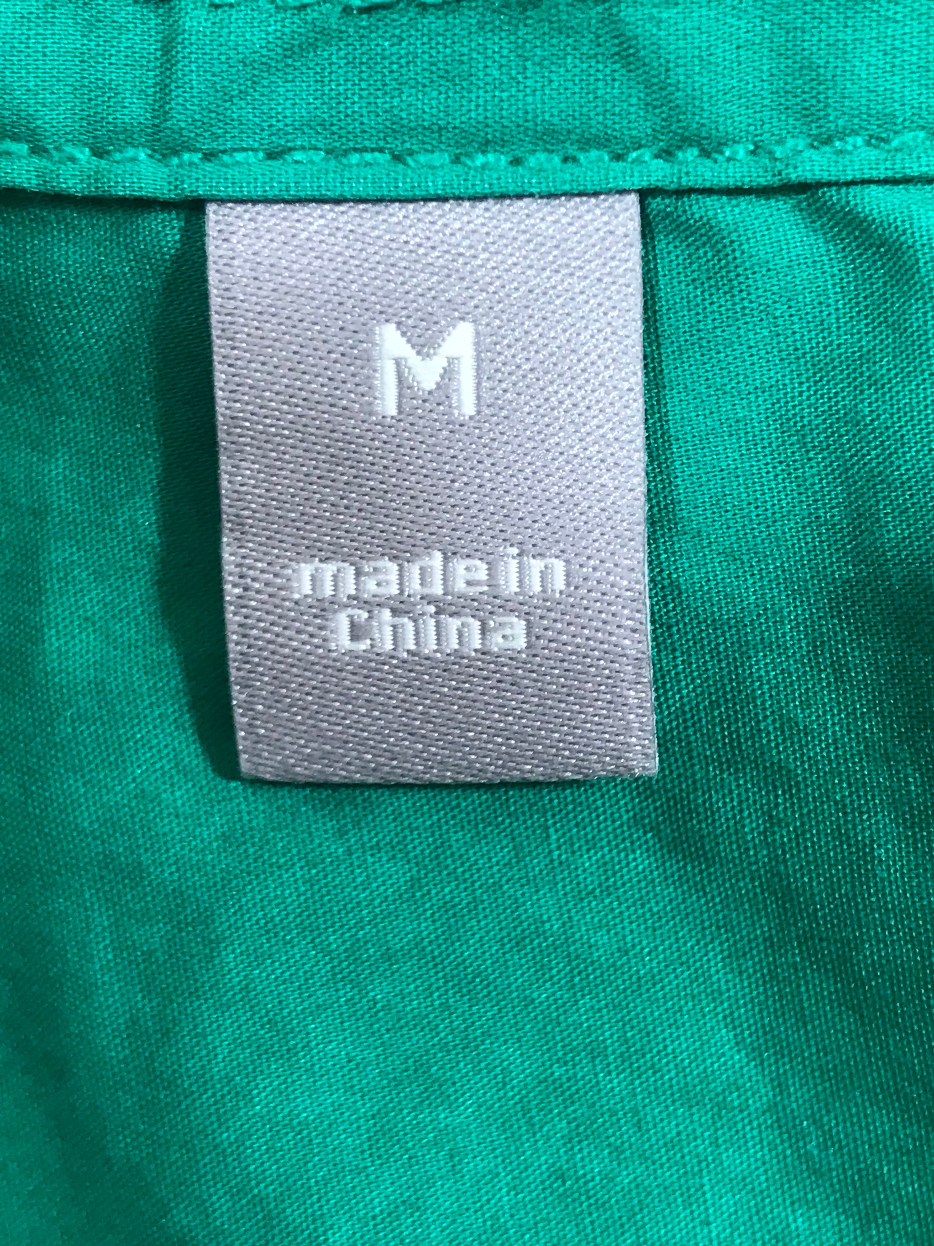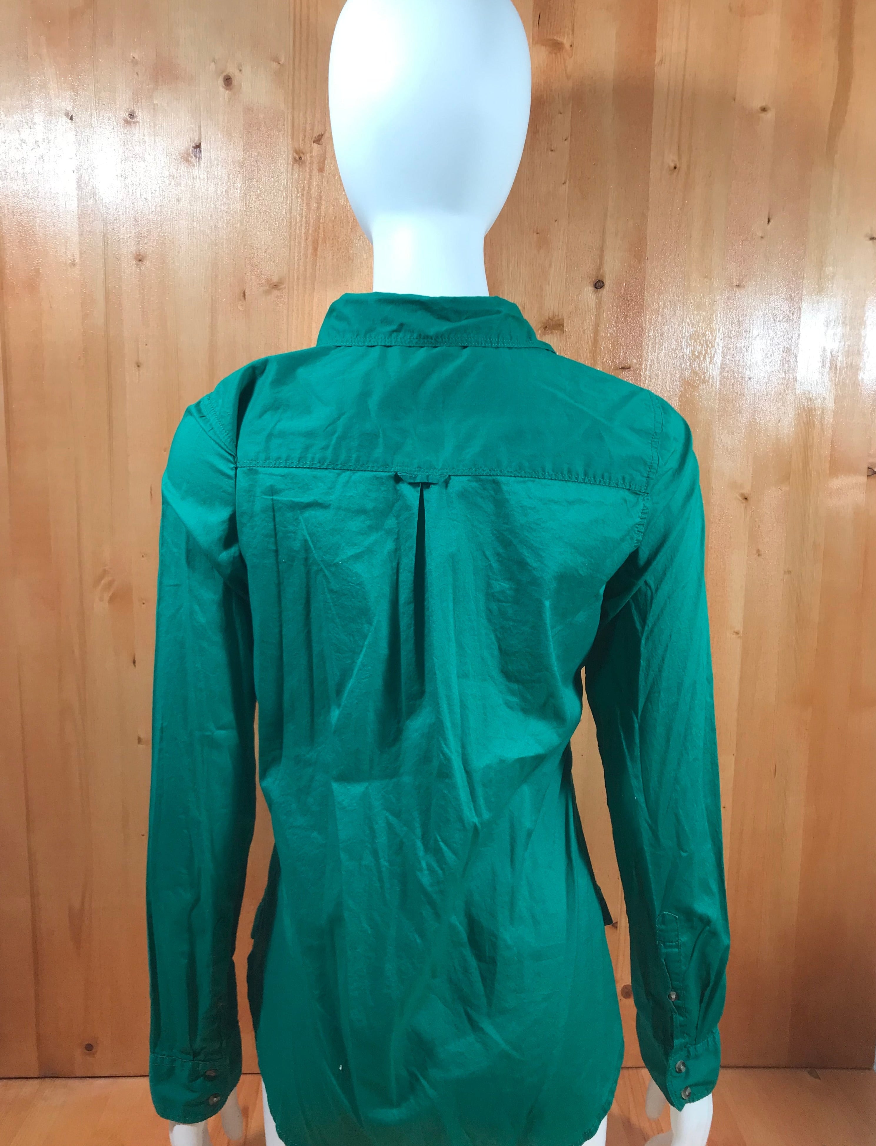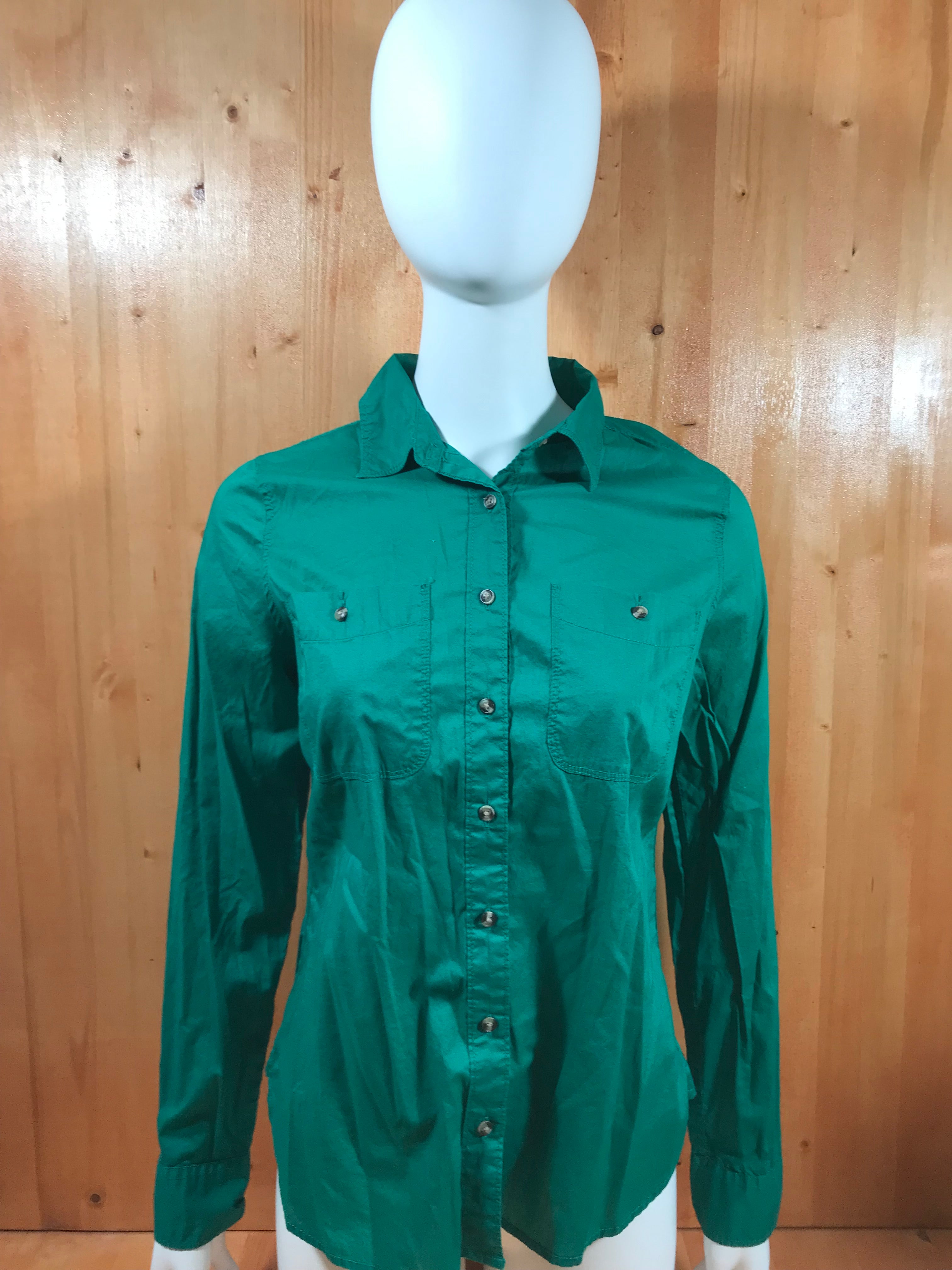 JCP Adult Women M MD Medium Long Sleeve Green Button Shirt Blouse Top