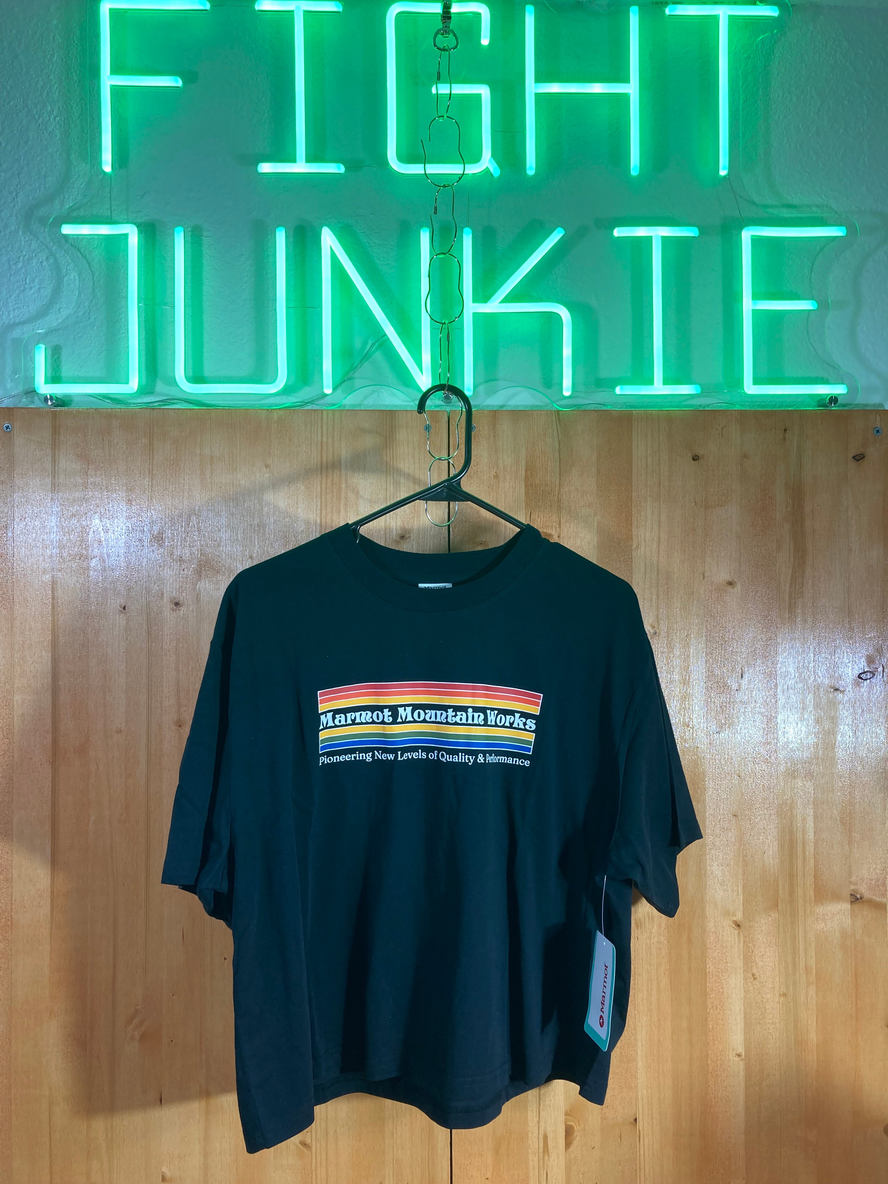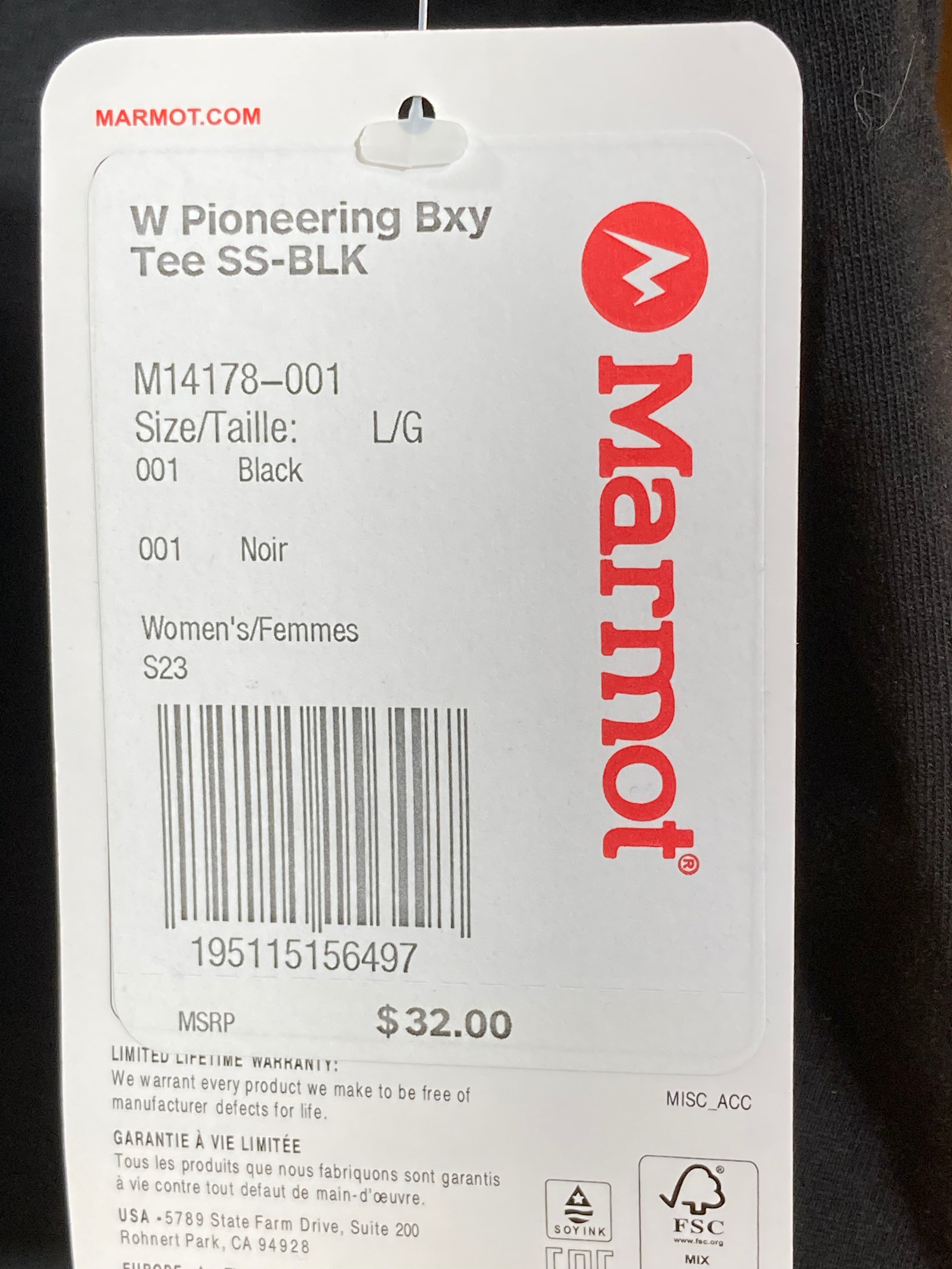 NEW! MARMOT PIONEERING Large L Lrg Cropped Adult Women Graphic Print Short Sleeve Black Shirt Top