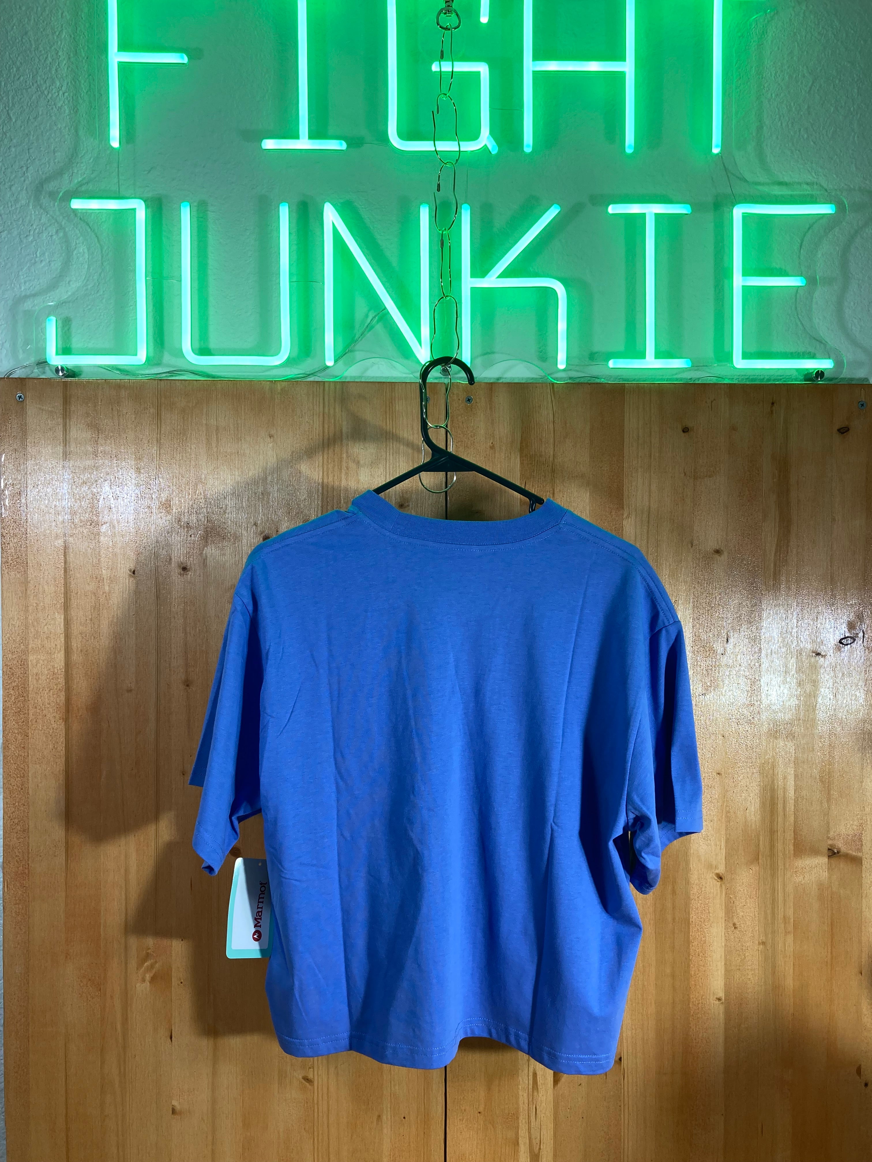 NEW! MARMOT PIONEERING Medium M Med MD Cropped Adult Women Graphic Print Short Sleeve Blue Shirt Top