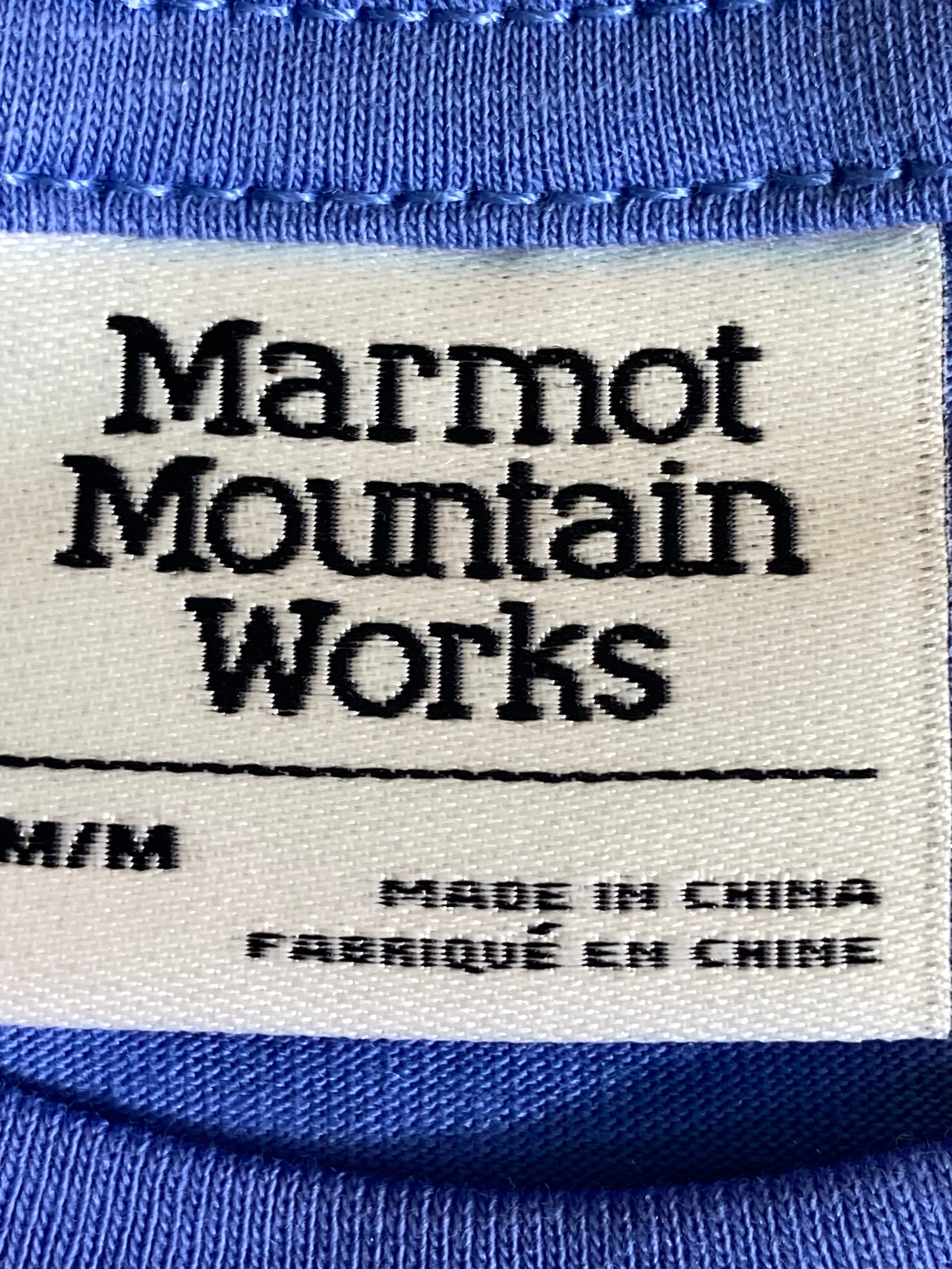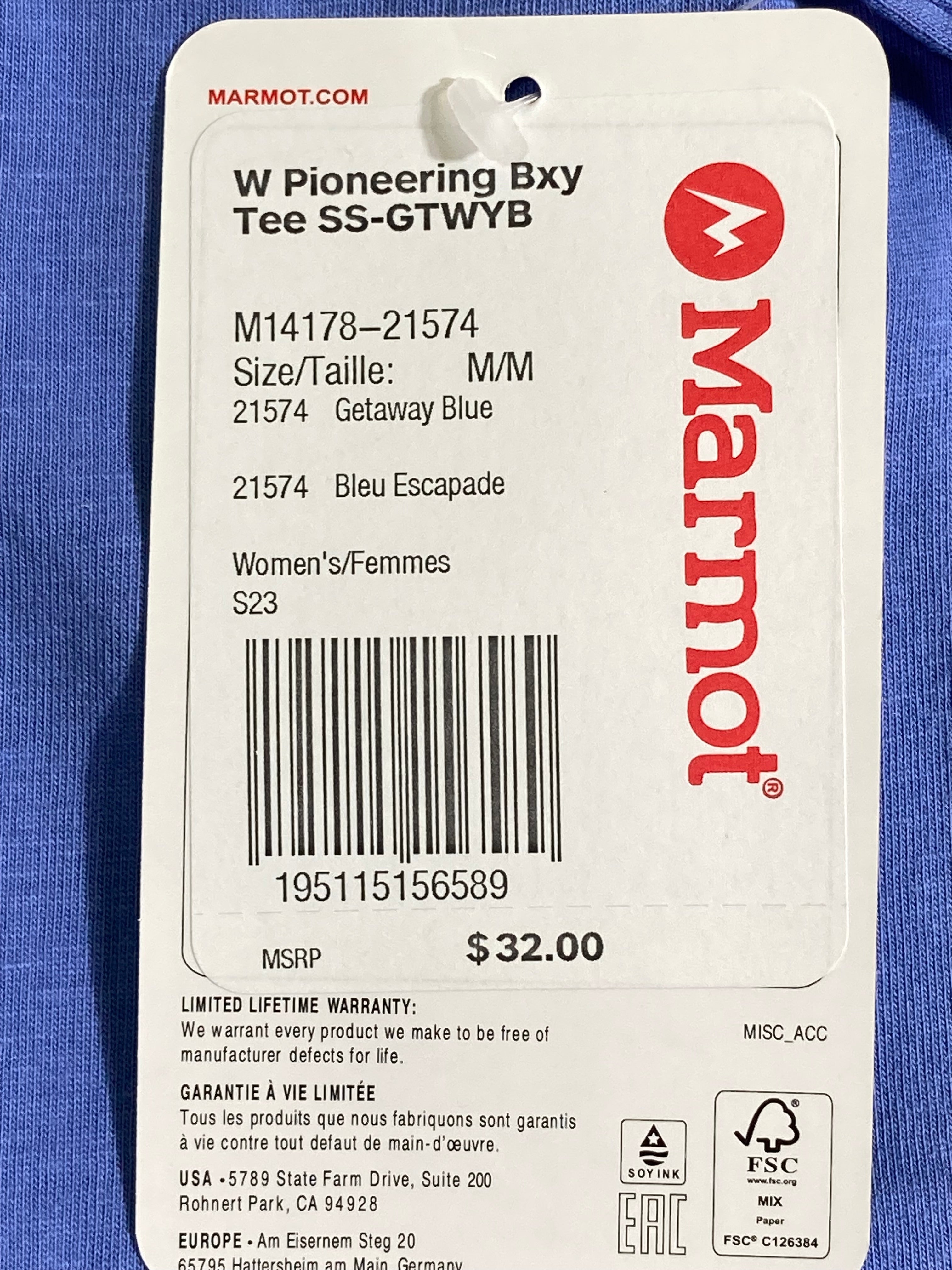 NEW! MARMOT PIONEERING Medium M Med MD Adult Women Graphic Print Short Sleeve Blue Shirt Top