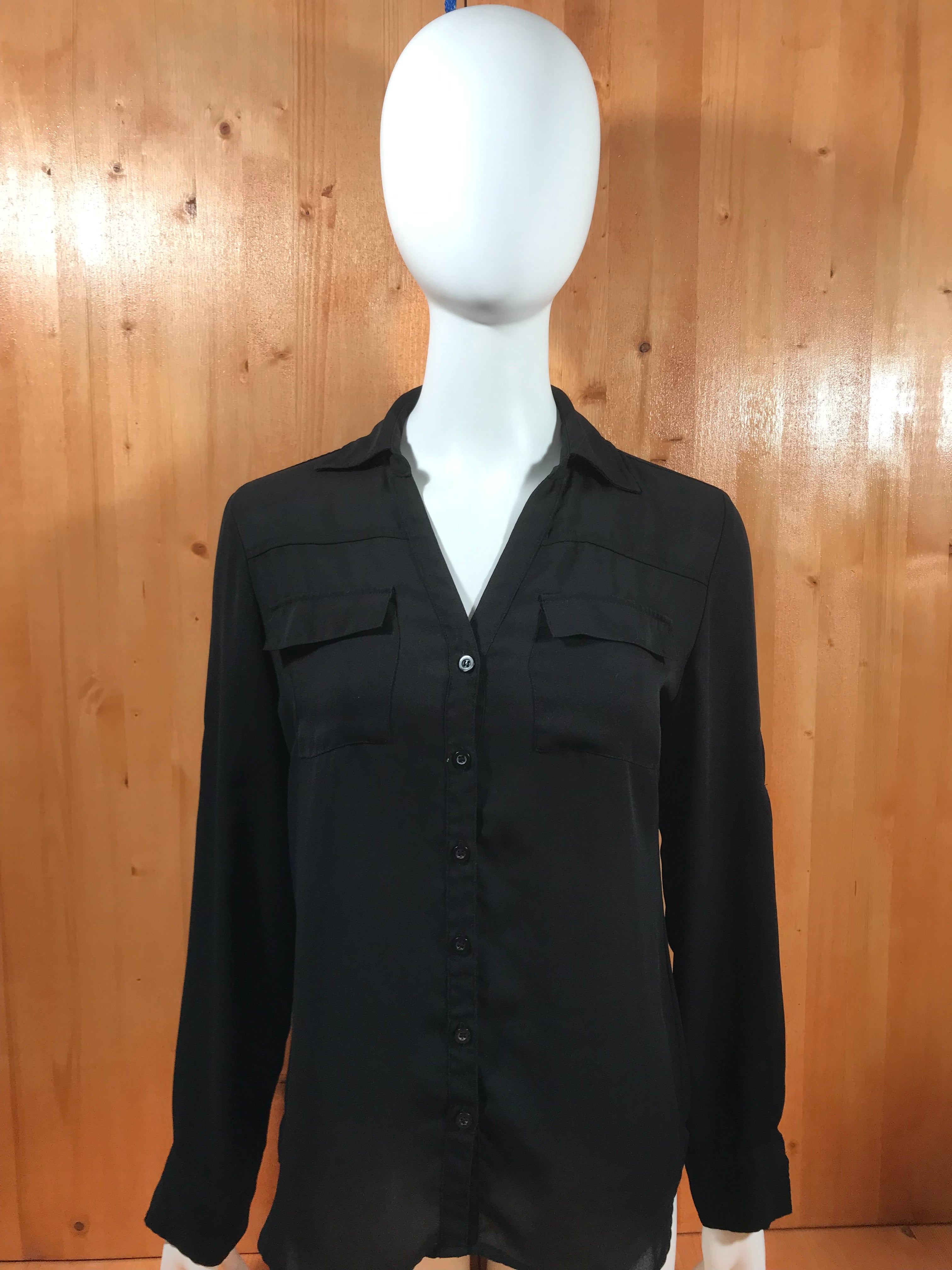 NEW YORK COMPANY Adult Women Long Sleeve S SM Small Black Shirt Blouse Top