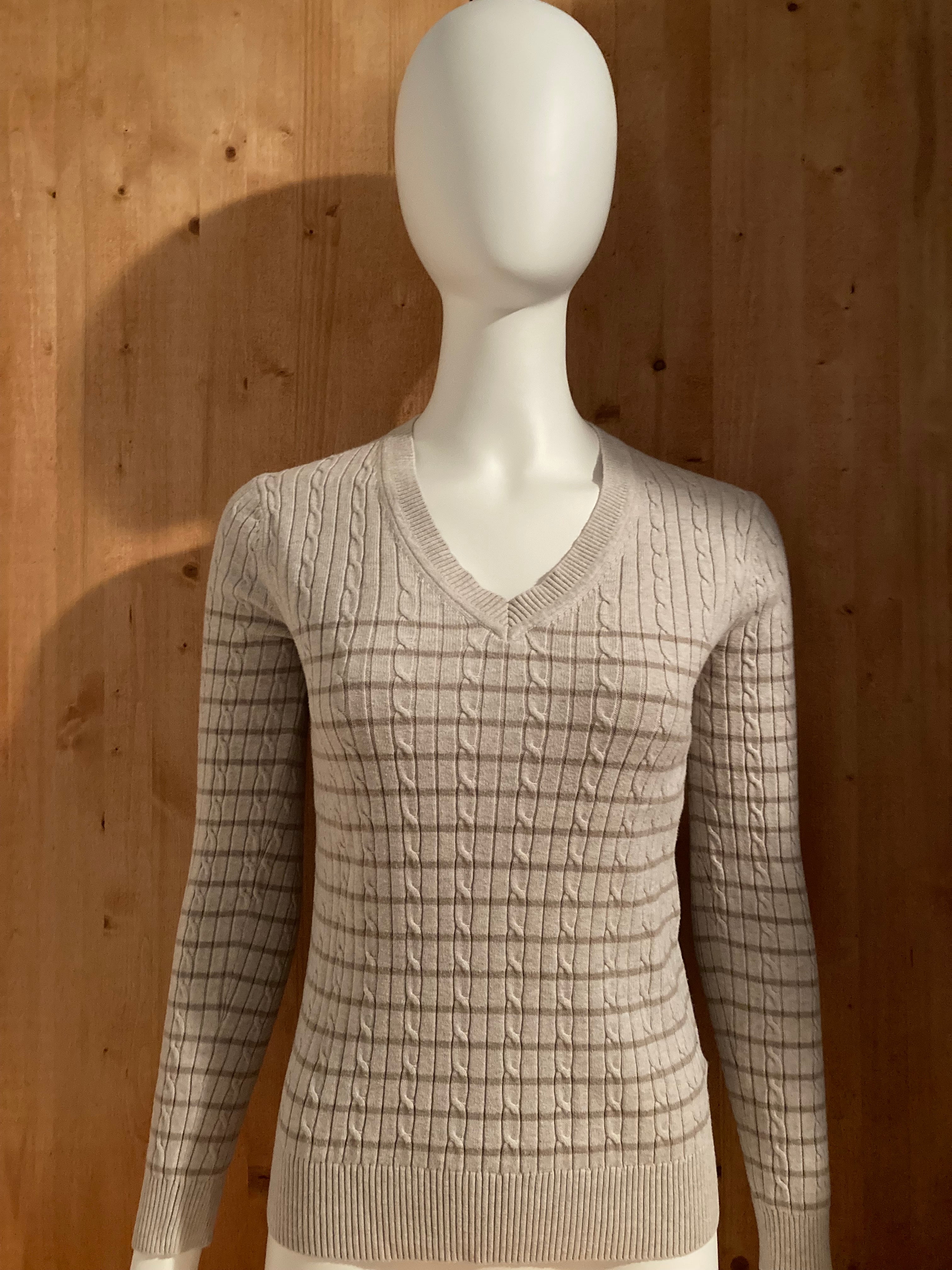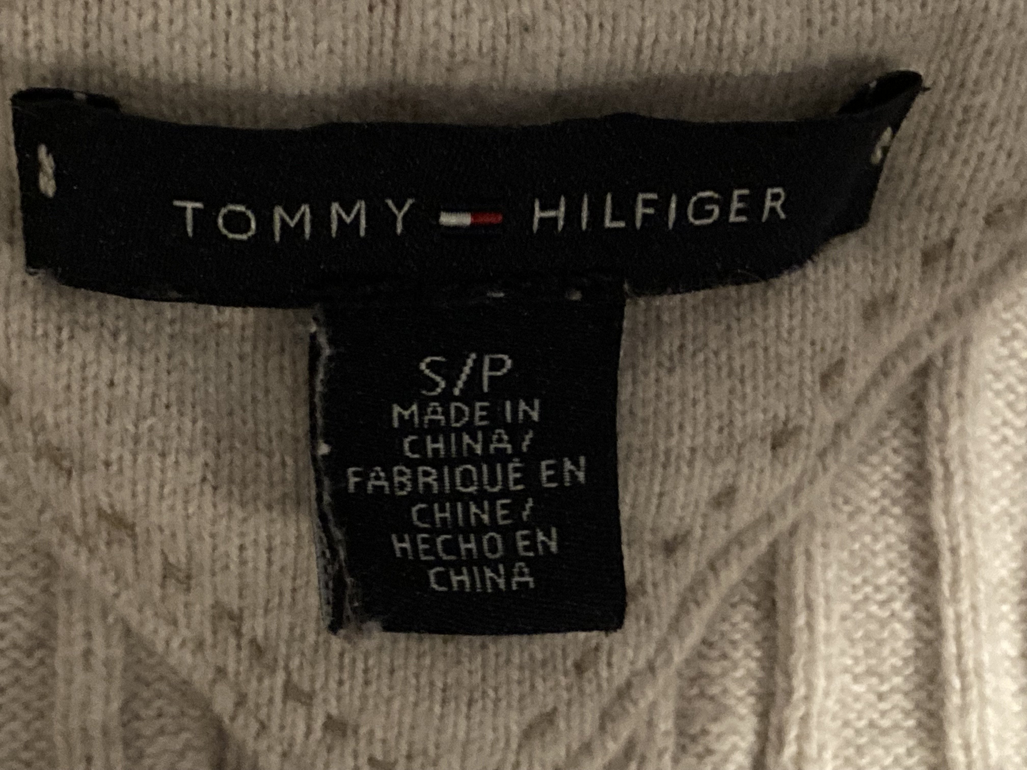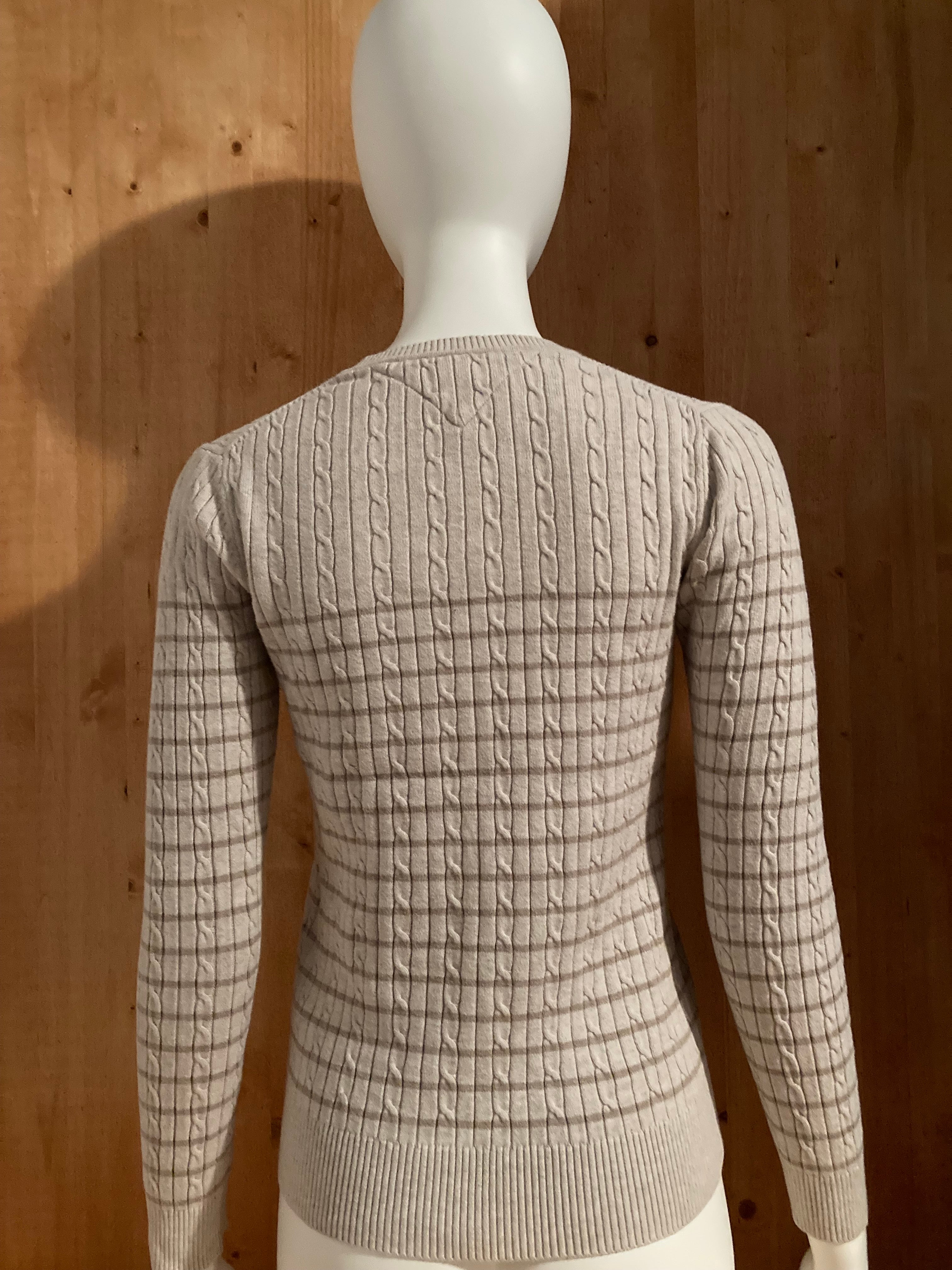 TOMMY HILFIGER Embroidered Logo Adult Women S SM Small Light Beige Long Sleeve V Neck Sweater 2013