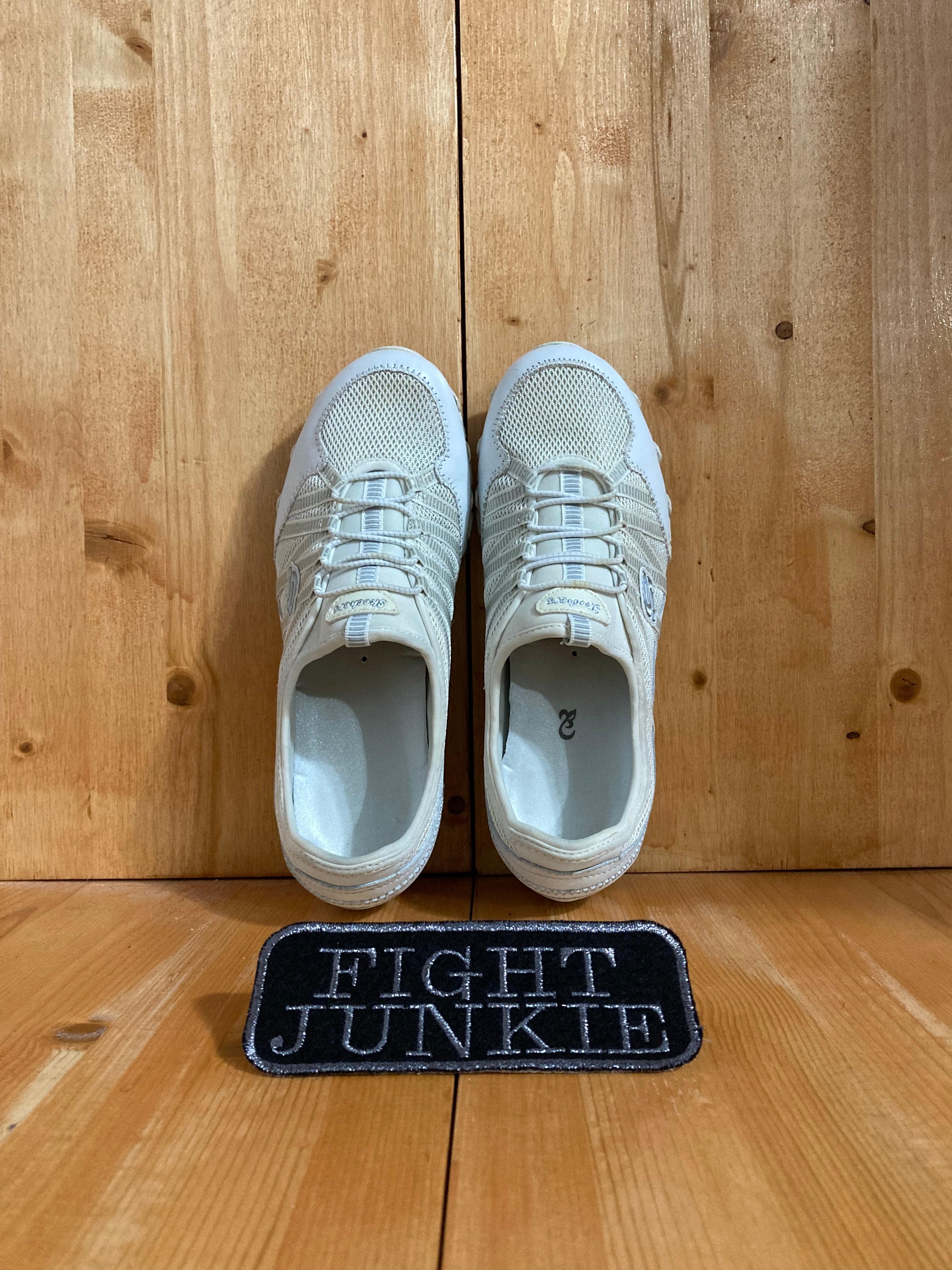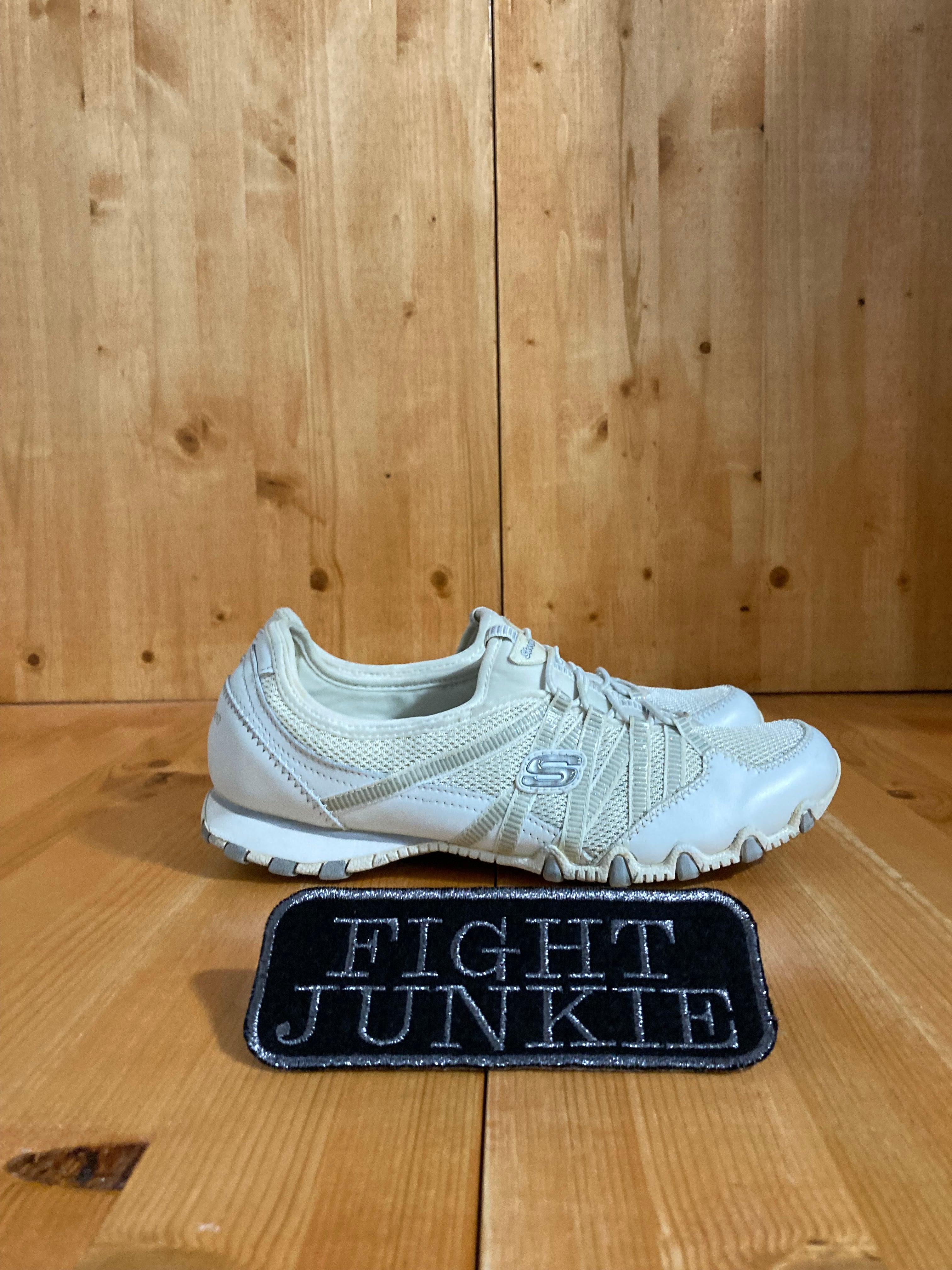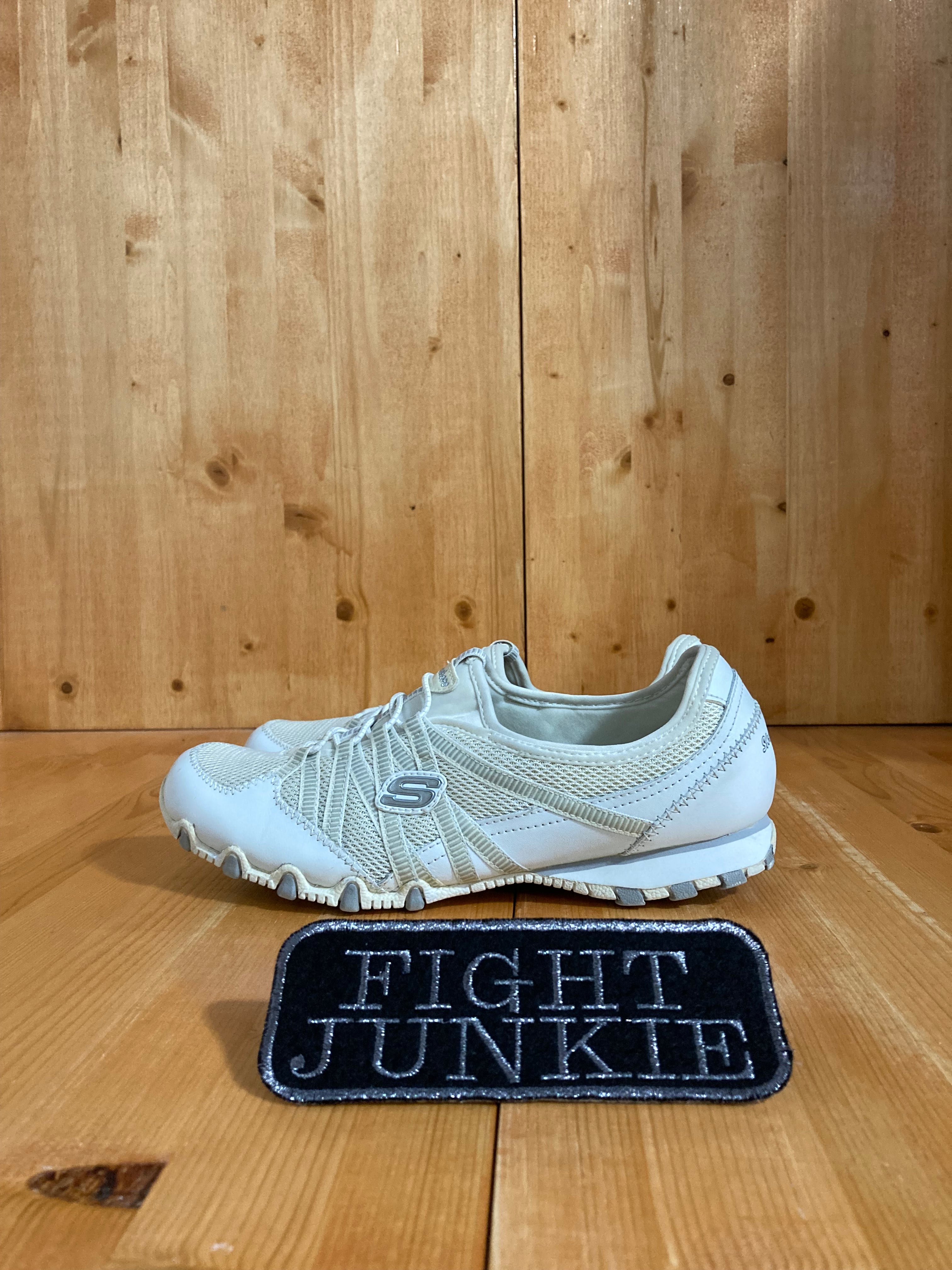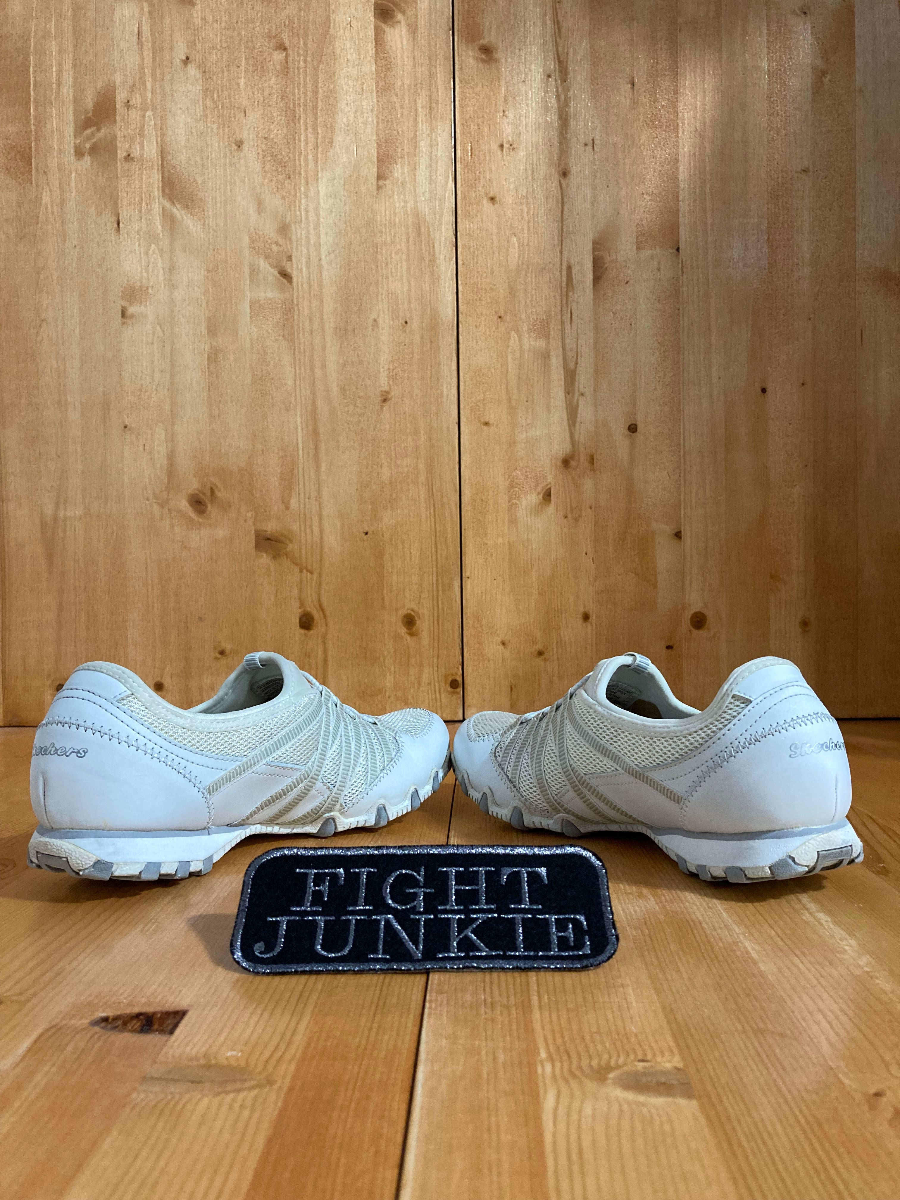 SKECHERS SKETCHERS BUNGEE BIKERS Womens Size 8 Slip On Biking Mesh & Leather Shoes Sneakers White 21159